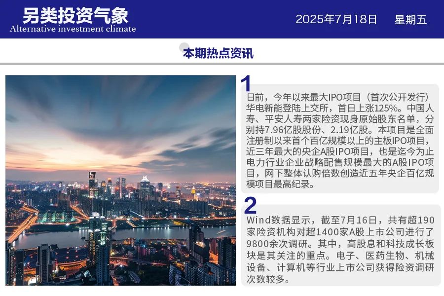 1. 日前,今年以来最大IPO项目(首次公开发行)华电新能登陆上交所,首日上涨125%。中国人寿、平安人寿两家险资现身原始股东名单,分别持7.96亿股股份、2.19亿股。本项目是全面注册制以来首个百亿规模以上的主板IPO项目,近三年最大的央企A股IPO项目,也是迄今为止电力行业企业战略配售规模最大的A股IPO项目,网下整体认购倍数创造近五年央企百亿规模项目最高纪录。